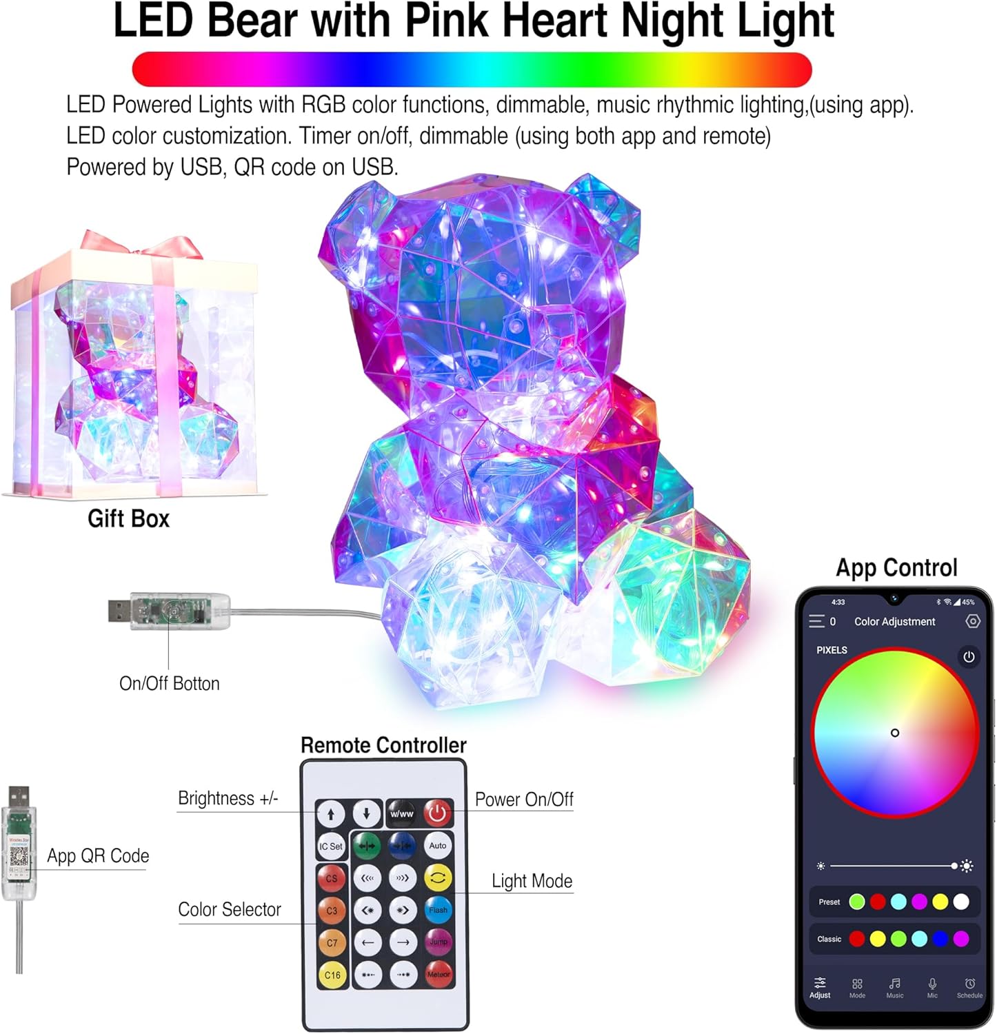 LED Unicorn Galaxy Bear Bunny Night Light RGB Remote Control App Control ON OFF Bed Timer Unique Rainbow Night Light Dimmable Nursery Decor Gift Box Holographic Light (Teddy Bear Pink Heart) Brand: LIFESTYLES WAREHOUSE